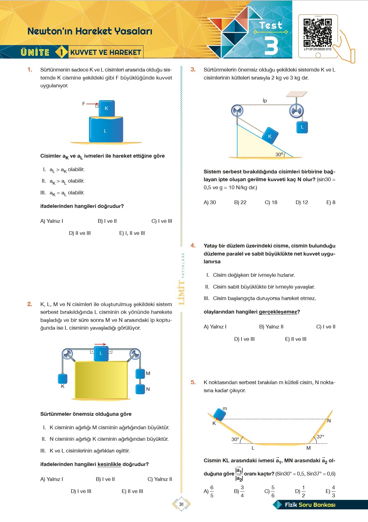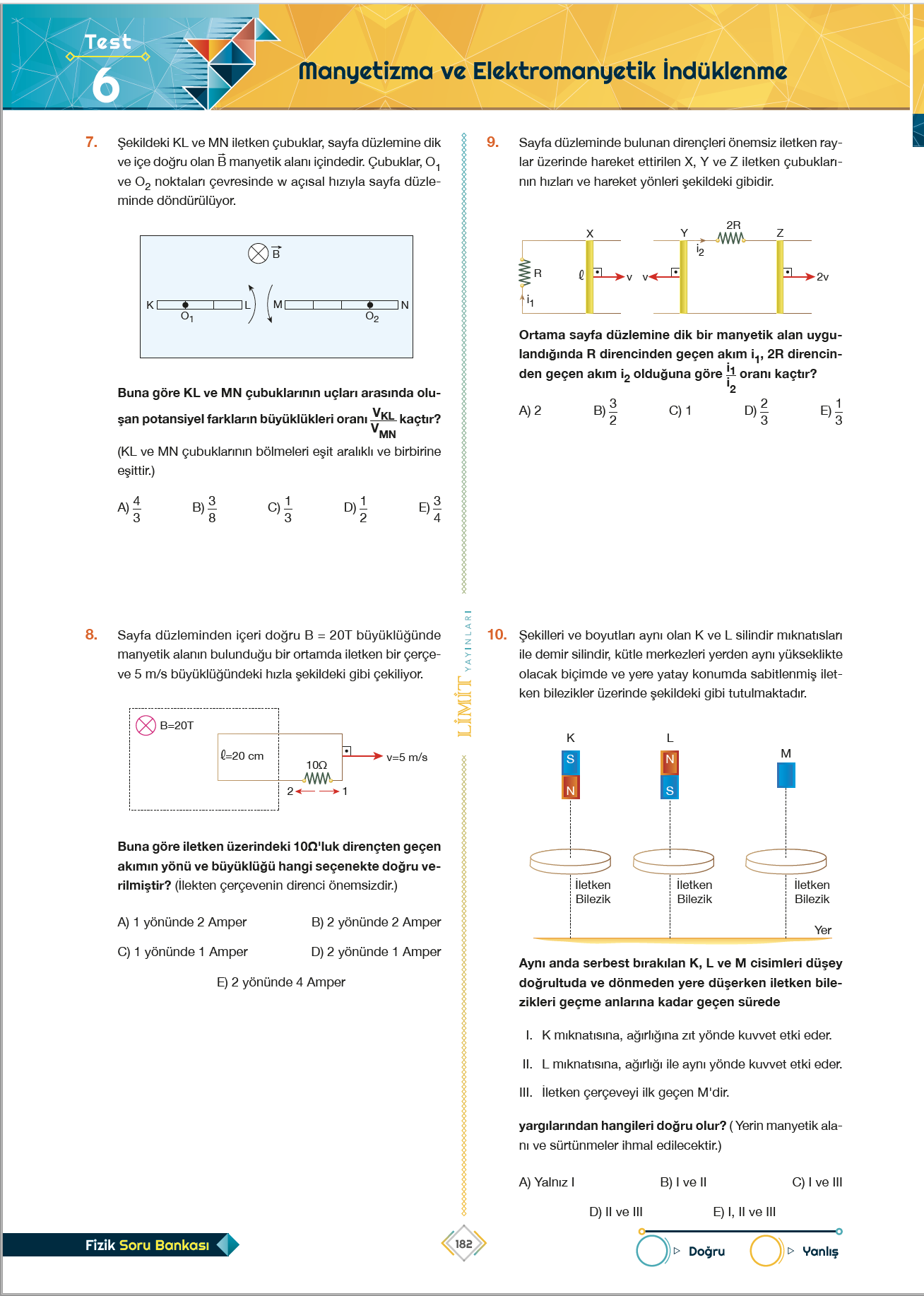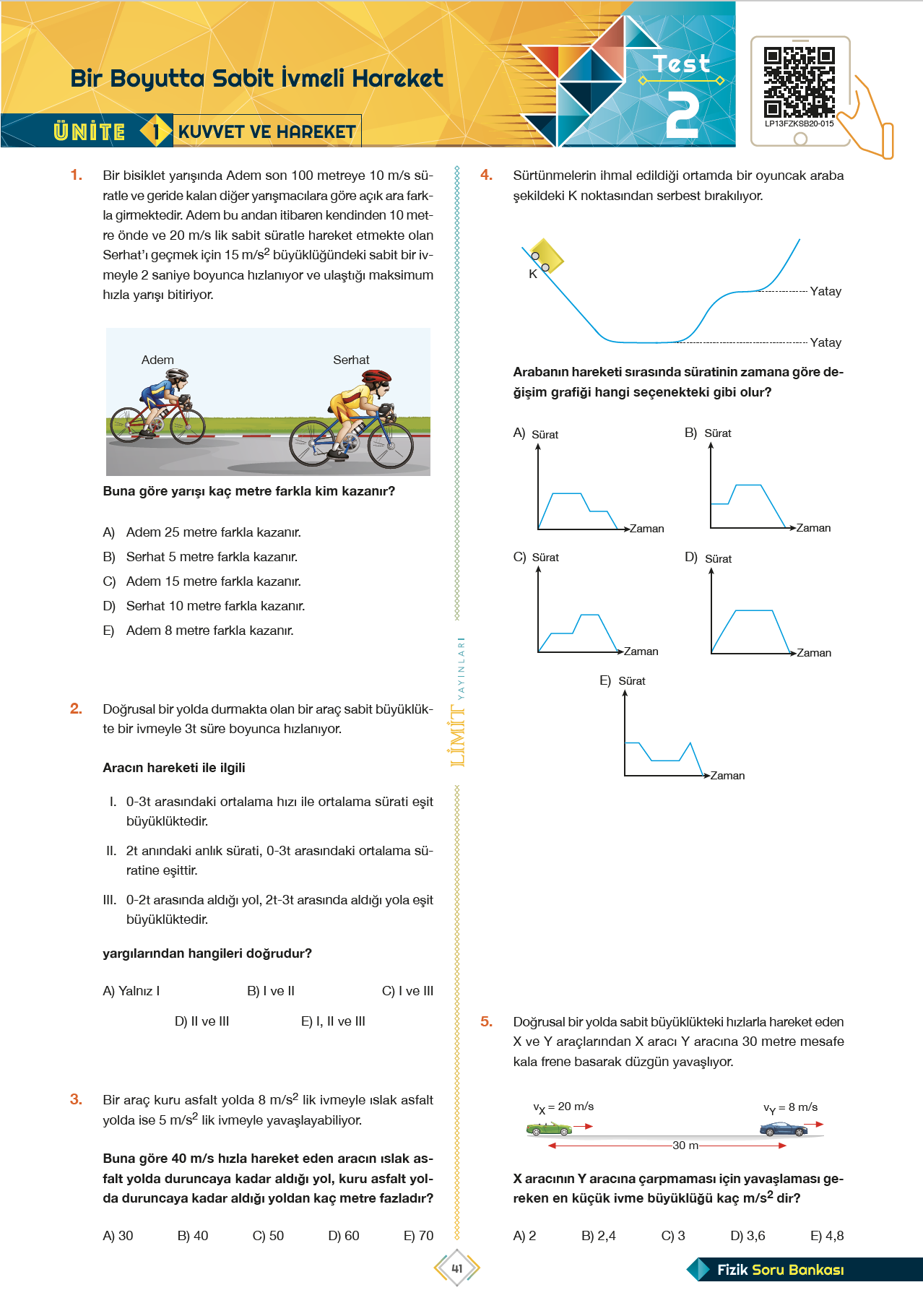 Fizik testi sınavlarda önem arz etmektedir. Bu yüzden yazarımız bu eserin metinlerini ve sorularını oluştururken AYT sınavının kapsamına uygun olarak hem bilgi ve bilgiyi işleme üzerine hem de öğrenilen bilgilerin günlük hayat ve teknoloji ile birleştirilmesine dikkat etmiştir. Ayrıca yararlanılan kaynaklar ile sınav sorularının hazırlandığı kaynakların paralel olmasına dikkat ettiğini de belirtmek isteriz.