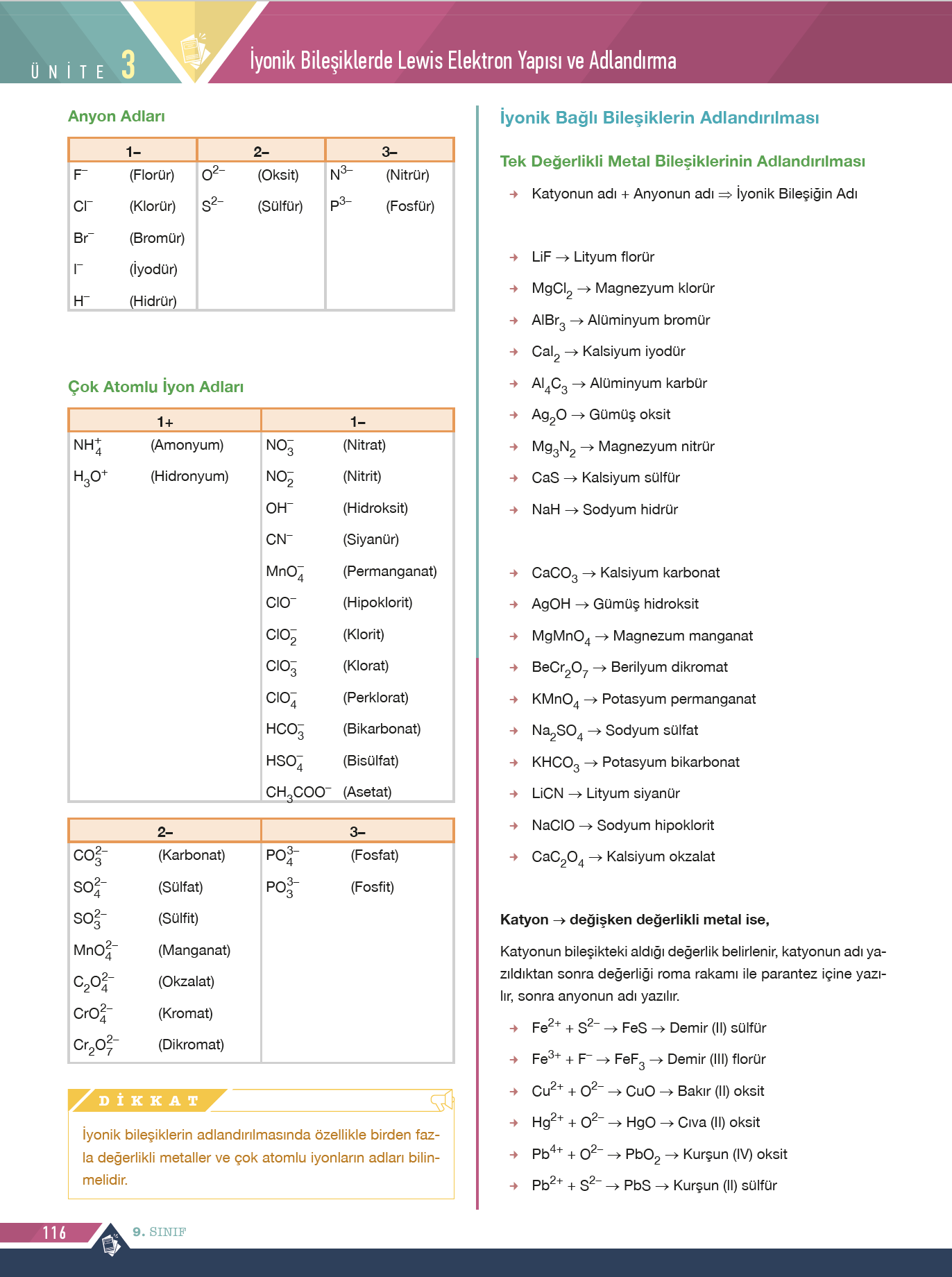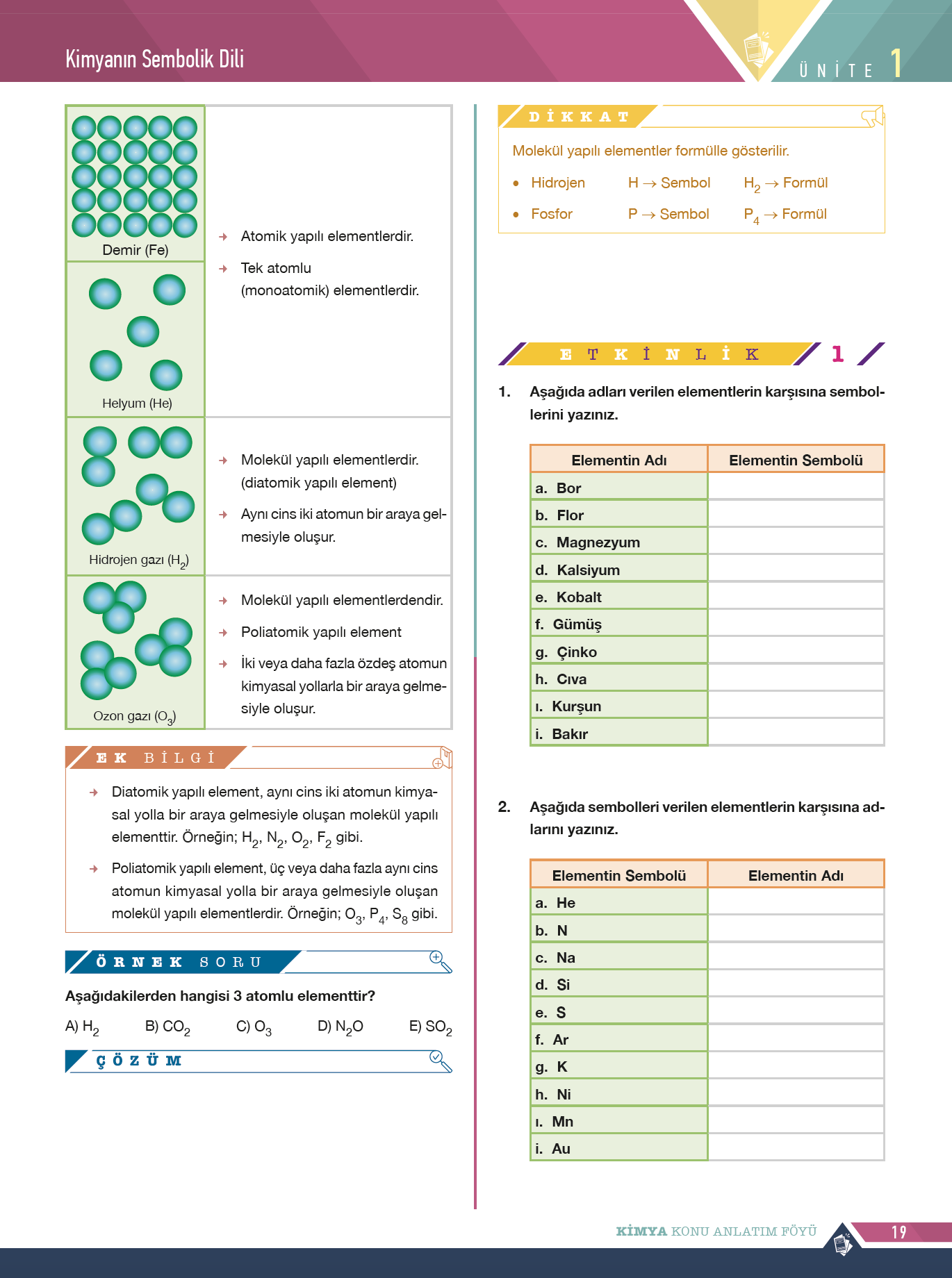 9. Sınıf Kimya Konu Anlatım Föyleri