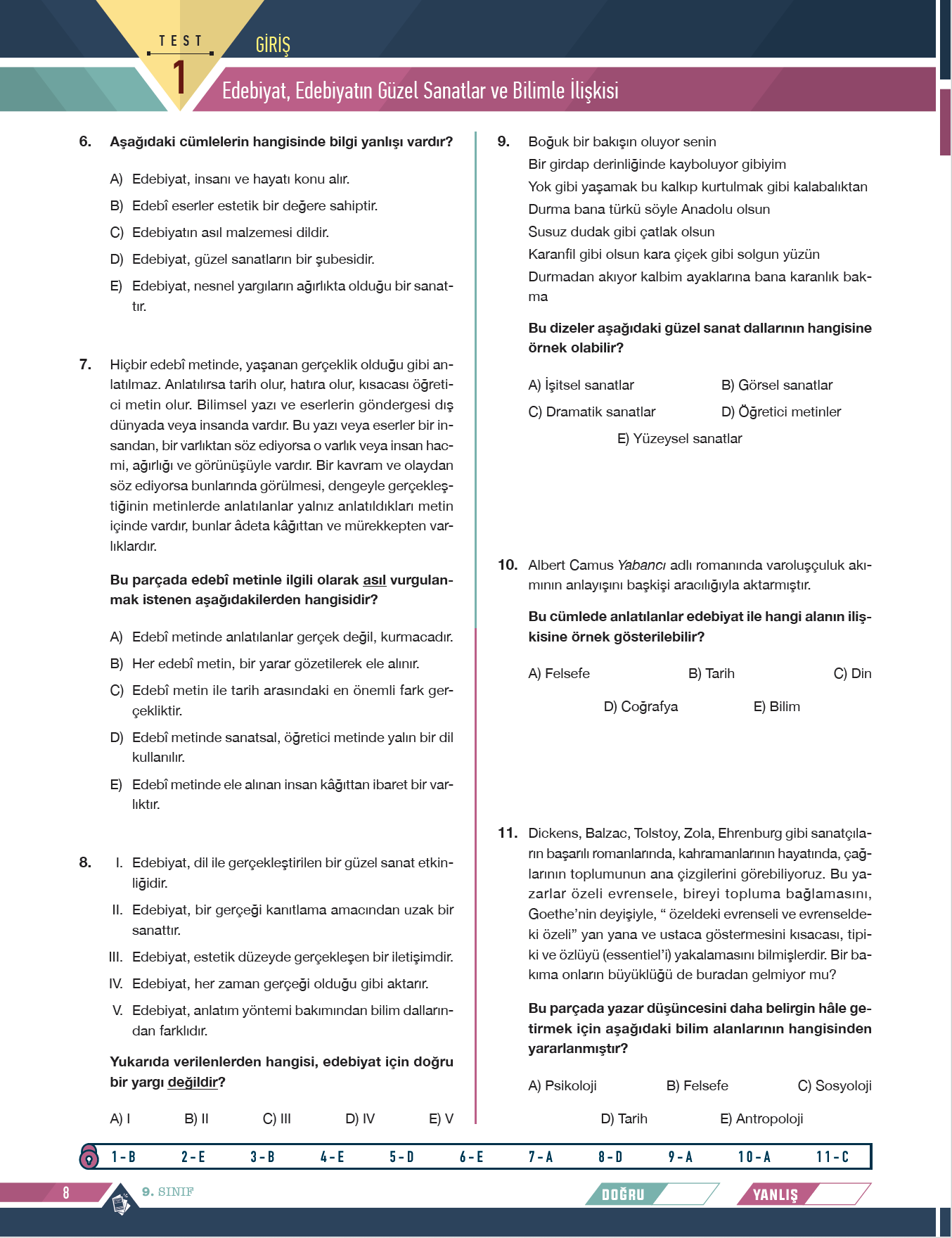 Okul hayatınızda ve merkezî sınavlarda bildiklerinizi geliştirmek ve başarılarınıza başarı katmak amacıyla hazırladığımız bu eserin siz değerli öğrencilerimize faydalı olacağına inanıyor, çalışmalarınızda başarılar diliyoruz.